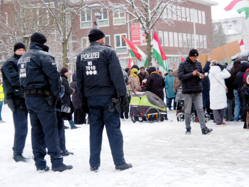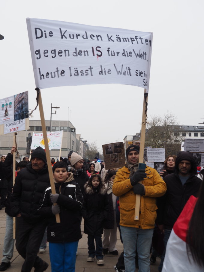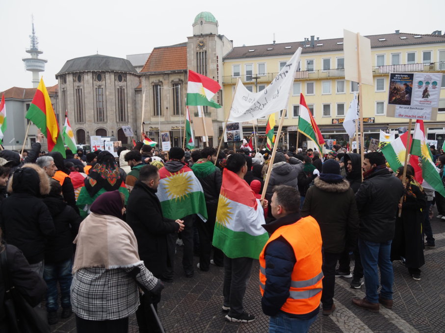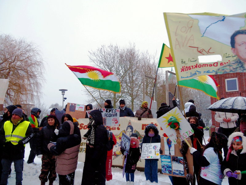 Rund 120 Menschen, darunter viele kurdische Flüchtlinge aus Rojava/Syrien
