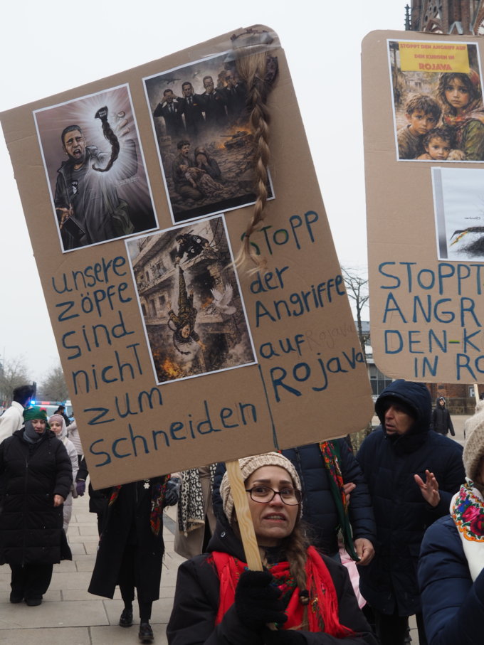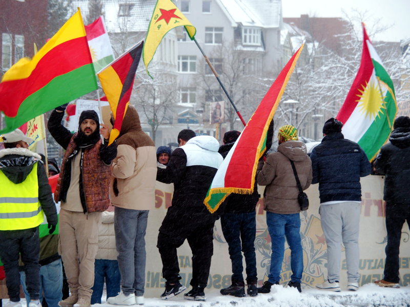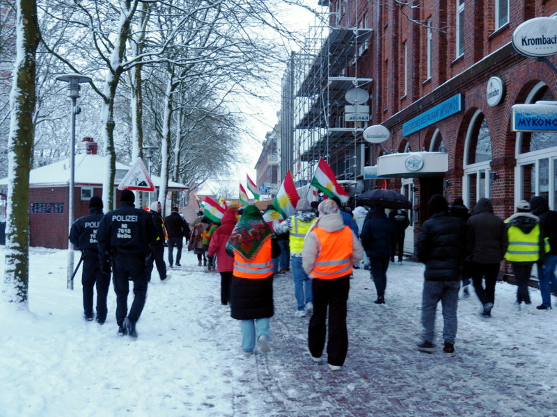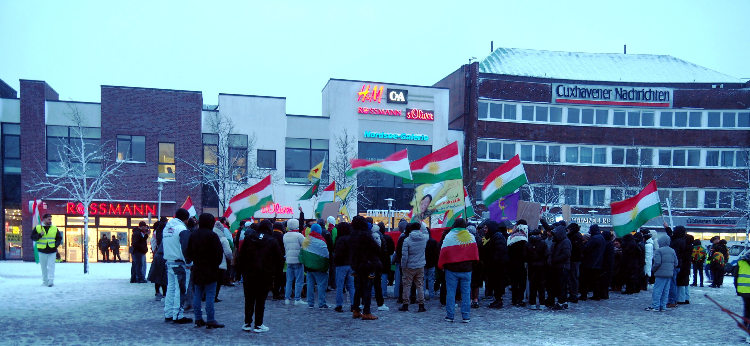 Gut 700 Menschen demonstrierten am Samstag, den 24.01.26 in Bremerhaven und über 200 Menschen am 26.01. in Cuxhaven gegen die islamistische Offensive in Nordostsyrien (Rojava).