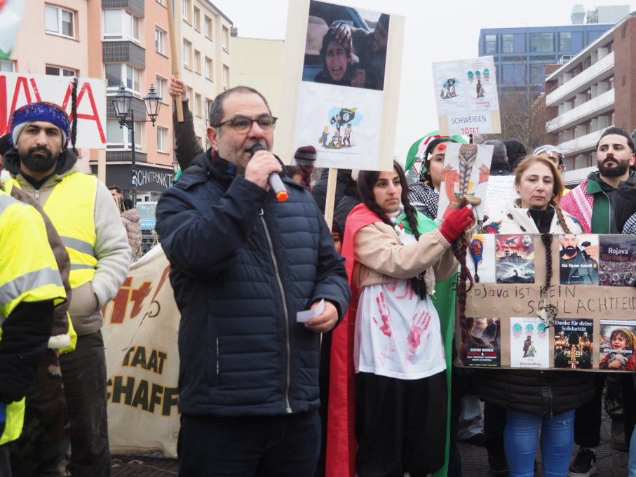 In Nord- und Ostsyrien wird Leben vernichtet; Frauen, Kinder und alte Menschen werden ermordet. Alle lebenswichtigen Bereiche wie Krankenhäuser, Bäckereien, Wasser- und Stromversorgung werden gezielt angegriffen. Es werden alle Methoden und Mittel eines Völkermordplans angewendet. Wir dürfen nicht vergessen, dass die tausenden IS-Gefangenen und ihre Anhänger*innen in den Camps eine große Gefahr für die Menschheit und insbesondere für alle Frauen darstellen. Das Vorhaben der Türkei, die IS-Gefangenen und ihre Familien zu befreien und den IS wieder aufleben zu lassen, zeigt sich ganz offensichtlich. Erneut wird heute in dieser Region ein entschlossener Widerstand gegen den globalen Terror des IS geleistet. Damit wird die gesamte Menschheit gegen den dschihadistischen Terror verteidigt.